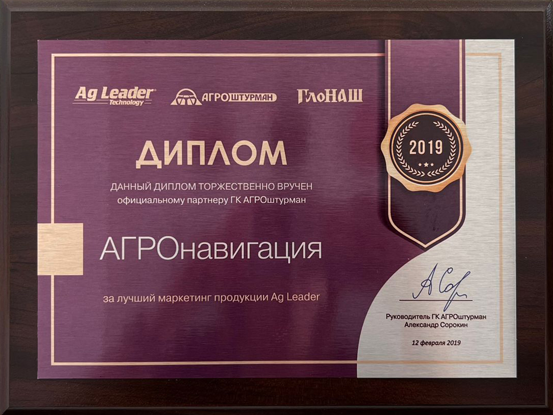 Благодарность от официального партнера за продвижение продукции Ag Leader